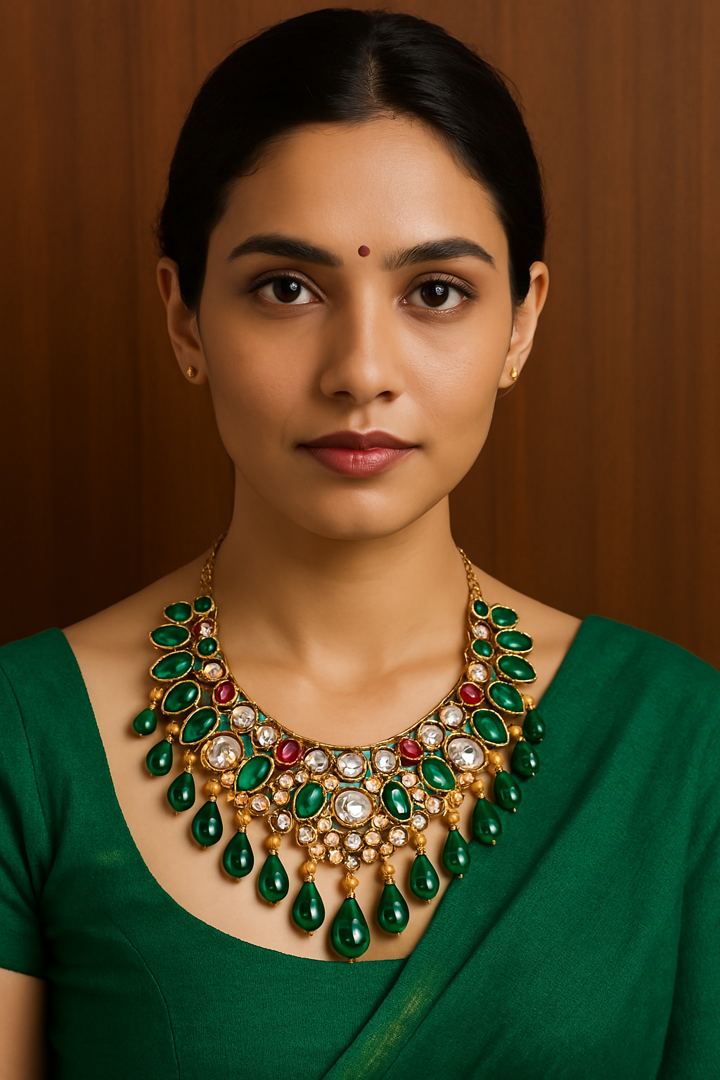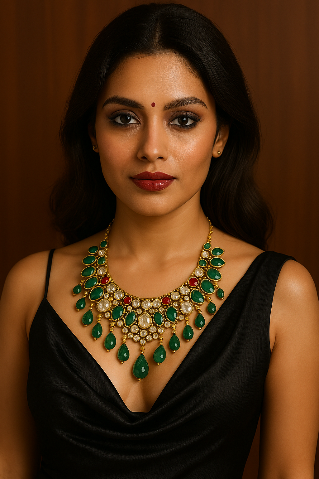 Adorn yourself with this stunning handcrafted artificial jewelry necklace, designed to add a touch of glamour to any outfit. Featuring intricate detailing, sparkling stones, and a luxurious finish, this piece mimics the grandeur of real jewelry without the hefty price tag.